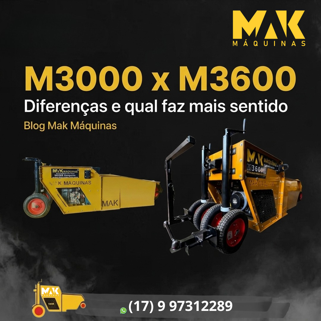 Resumo: Se a maior parte do seu faturamento é contrato repetitivo de prefeitura (meio-fio/sarjeta padrão), a M3000 costuma ser suficiente. Se a agenda mistura perfis e inclui calçada/perfis maiores, a M3600 tende a dar retorno.